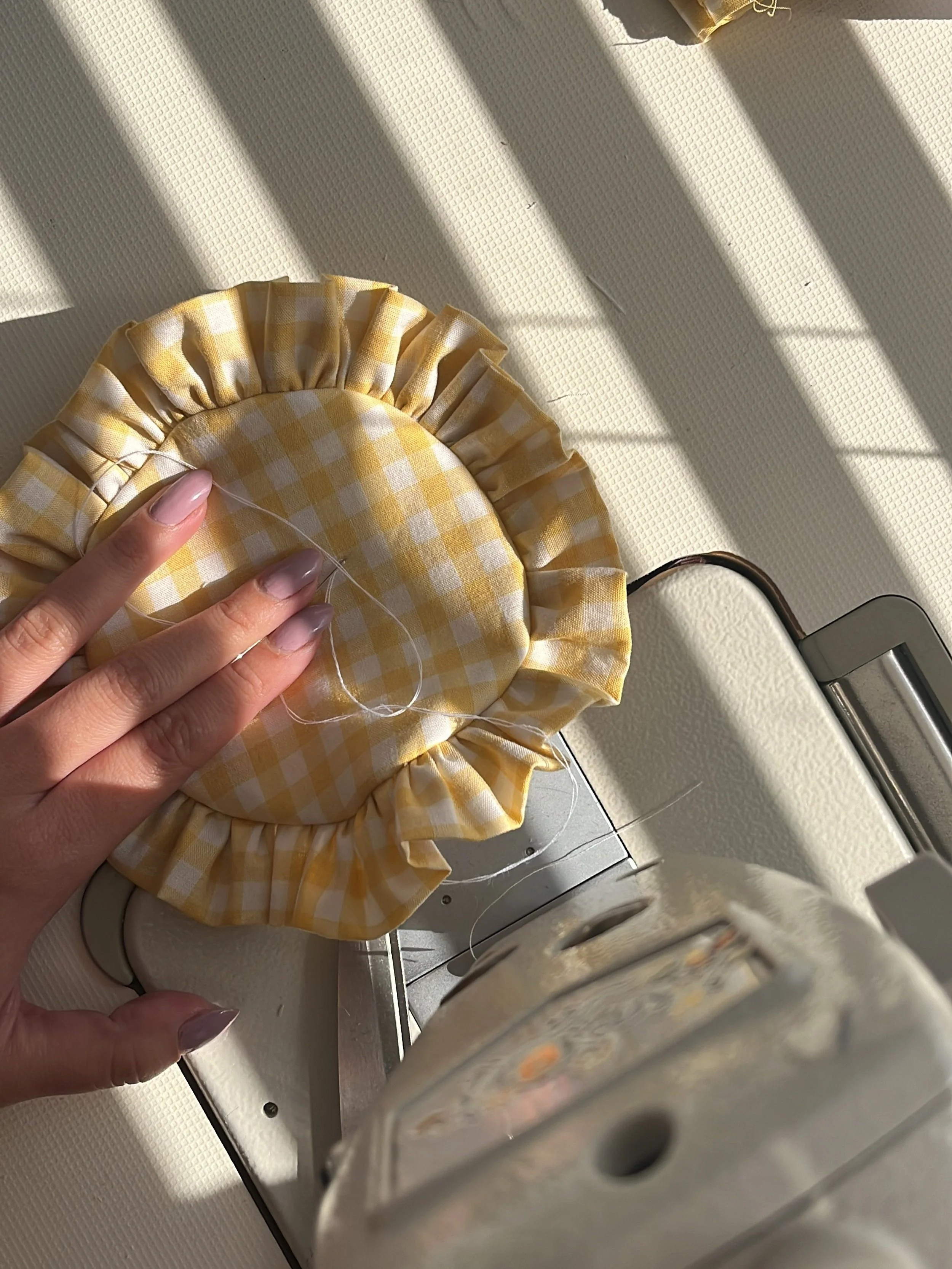 I also trim the ruffle’s seam allowance so it doesn’t create a big dent when turned inside out.