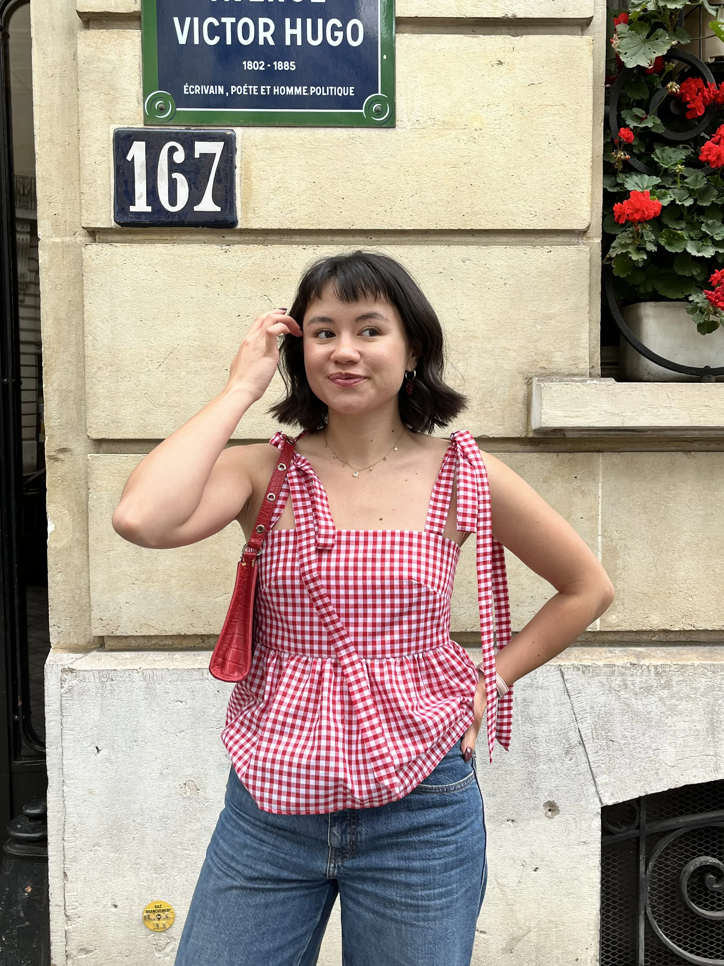 My lovely friend Alice ordered a June drop in the red gingham! It was made custom to her measurements and I don’t have a photo of her wearing it so here is a photo of me wearing a size small, hope that helps x
