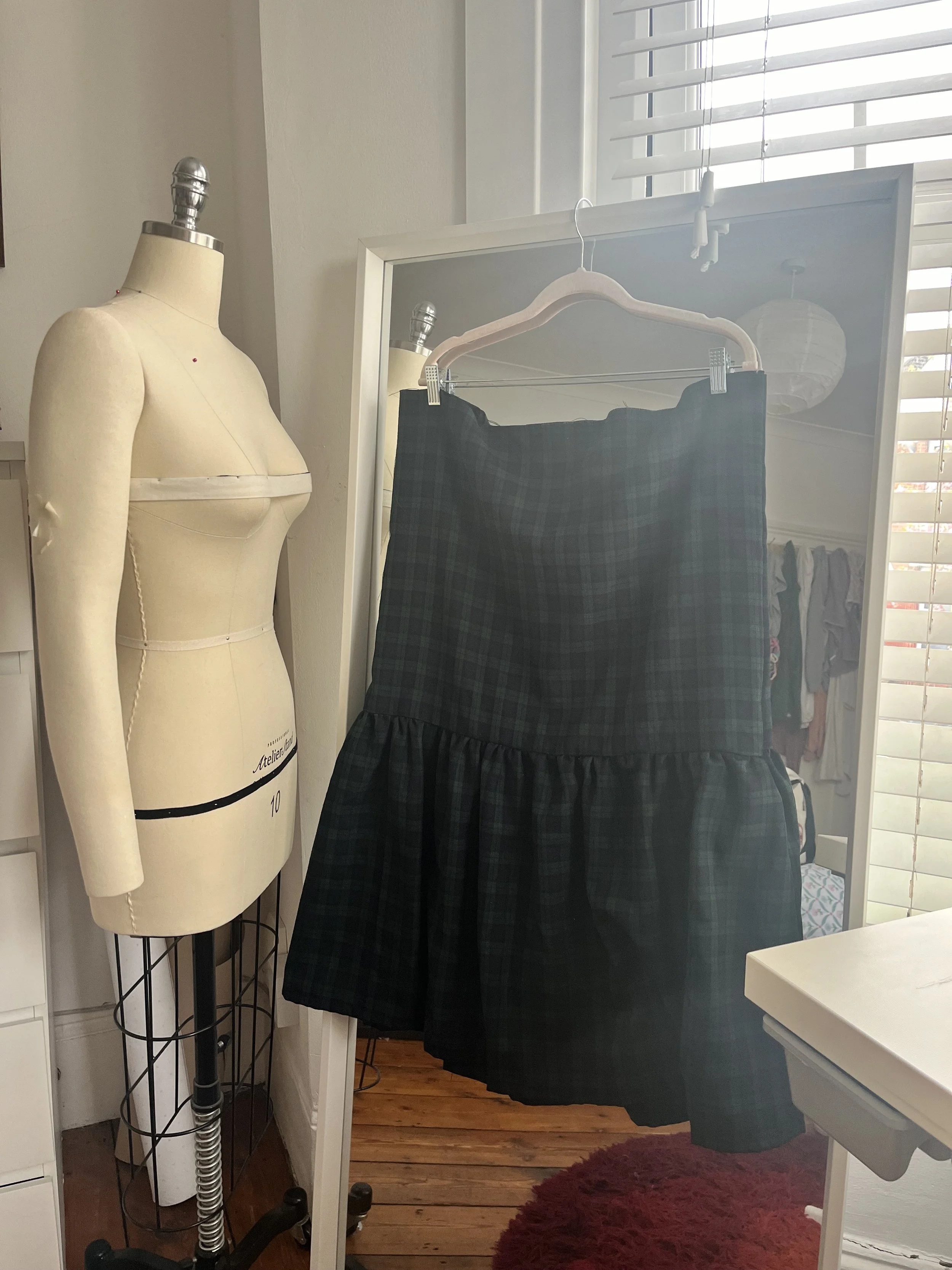 Another lovely order! I really love making this skirt specifically in this fabric - I love how smooth the fabric is; cutting it is easy because of the checkered lines, and it comes together so beautifully. If I only had to make this skirt the rest of my life to make a living I would be a happy gal. No photos of the actual skirt because I didn’t put it on but photos of the product here when you select the Green Plaid color.
