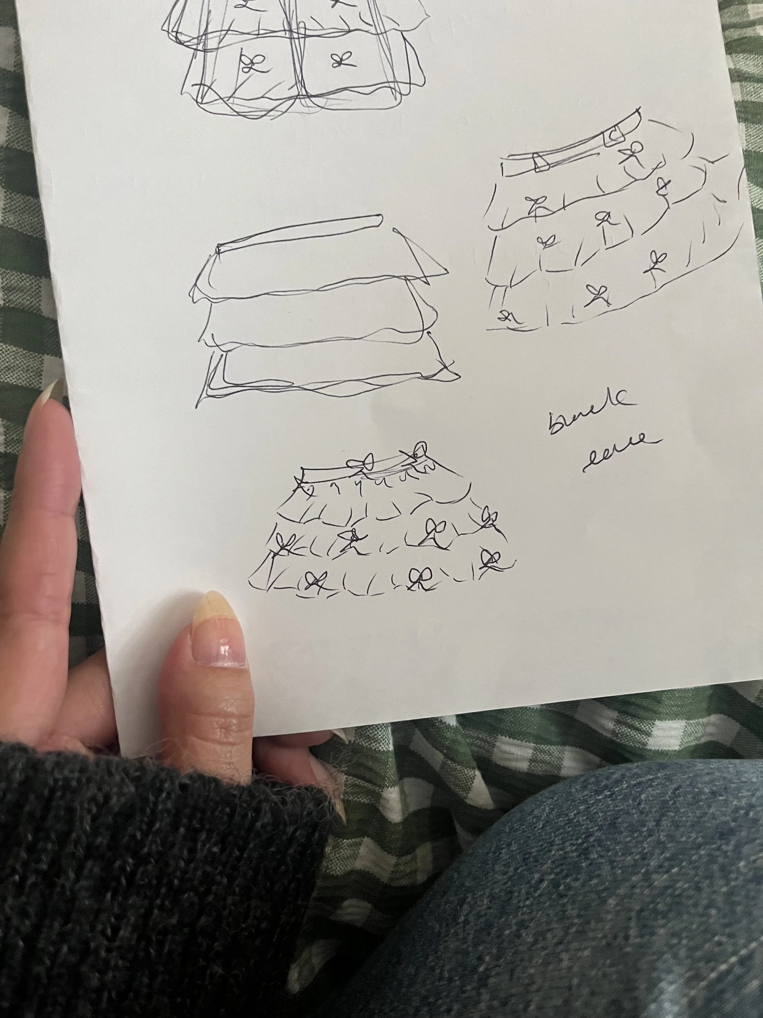 4. I dreamt this skirt design. In my dream, I was at a workshop sewing these big and small black bows onto a black lace ruffle skirt. I would absolutely love to make it a reality.