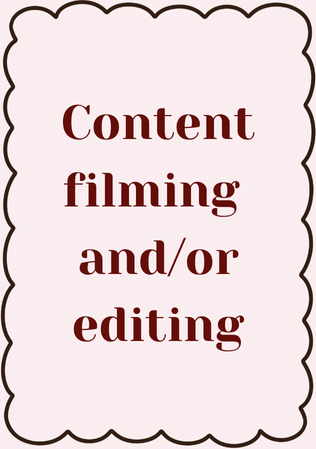 An 8 hour work day where we work through your content needs as a brand/individual. This can include the following: